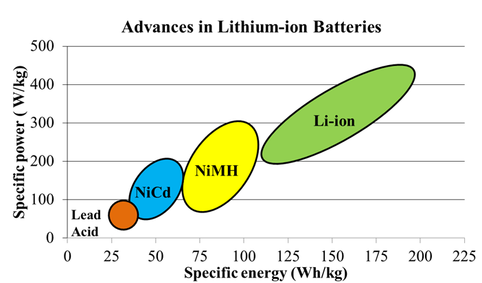 Fig. 2 Specific Power & Energy of Different Battery Types |